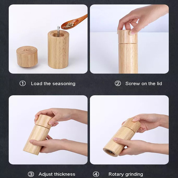 Household Spice Storage Containers Gadget Rubber Wood Pepper Grinder Images |
